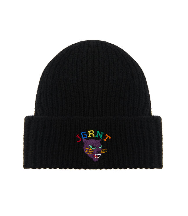 Jugrnaut Mohair wool blend beanie in black with embroidered details