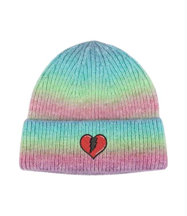 Jugrnaut LOVE embroidered wool blend tie dye beanie with a single fold cuffs. We call this color way, Sherbert.