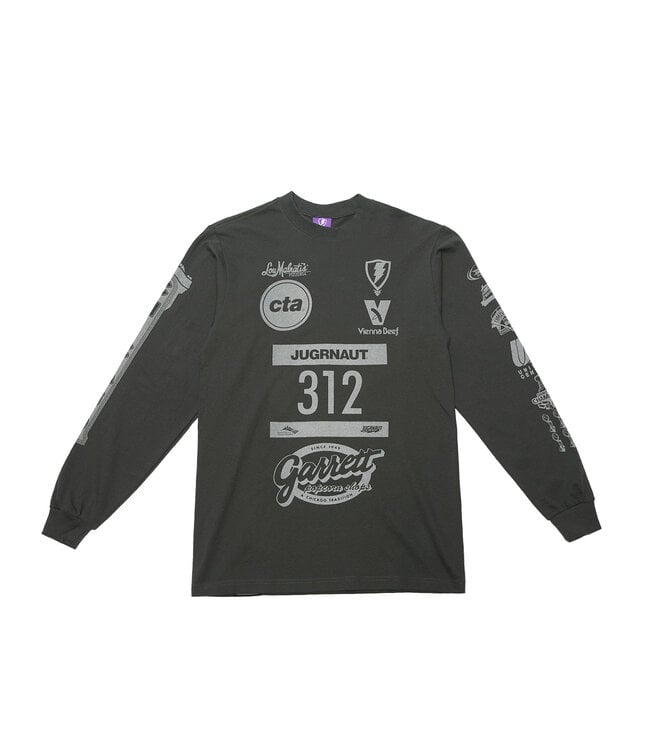 Jugrnaut 3M Marathon Long Sleeve. This is an original design from 2009. Every company on the Long Sleeve is from Chicago. Screen printed graphics with 3M reflective ink.