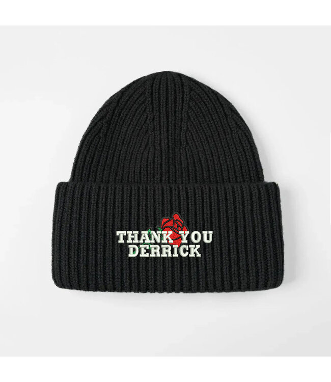 Jugrnaut embroidered Thank You Derrick merino wool blend double fold beanie